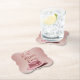 This is a Luxe Best Mom Ever Rose Gold Coaster. The rose gold design was created with generative art. The art features a pink rose gold woman's hat with a pink ribbon. The hat is on a pink rose gold background. Best Mom Ever is in rose gold script above the hat. The coaster is a bracket coaster. The coasters are in a set of 6 pulp board coasters.