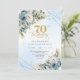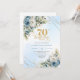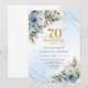 Celebrate a milestone in style with this elegant 70th birthday invitation featuring watercolor dusty blue and white flowers, soft eucalyptus greenery, and a shimmering gold frame. Designed in chic boho style with refined script lettering, this floral invitation is perfect for a classy 70th birthday party. Ideal for formal, garden, or luxury celebrations with a timeless, sophisticated touch.