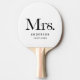 This elegant, minimalist ping pong paddle says "Mrs." in a modern, high-fashion luxury font in black and white, and also has a spot for your last name and wedding date.