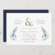 Invitations de mariage personnalisées et abordables personnalisées personnalisées avec les détails de votre événement. Cet élégant design présente un faux ampersand en feuille d'or avec des flancs d'eau bleu et vert délicats sur un arrière - plan blanc. Utilisez les outils de conception pour customiser le texte, modifier les polices et les couleurs ou ajouter vos propres photos pour créer un faire-part de mariage élégant et élégant.
