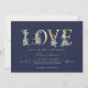 Affordable custom printed bridal shower invitations personalized with your party details. This elegant design features faux gold foil LOVE typography with delicate watercolor florals on a bold navy blue background. Use the design tools to customize the text, edit the fonts and colours or add your own photos to create a classy and stylish wedding shower invitation.