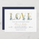 Des invitations de douche personnalisées et abordables pour les couples imprimés et personnalisées avec les détails de votre fête. Ce design élégant présente une typographie d'AMOUR en feuille d'or faux avec des flores délicates en aquarelle sur un arrière - plan blanc. Utilisez les outils de conception pour customiser le texte, modifier les polices et les couleurs ou ajouter vos propres photos pour créer une invitation wedding shower classe et élégante.
