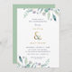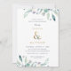 Affordable custom printed wedding couple's shower invitations personalized with your event details. This elegant design features a faux gold foil ampersand with delicate blue and green watercolor foliage on a white background. Use the design tools to customize the text, edit the fonts and colours or add your own photos to create a classy and stylish wedding shower invitation.