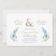 Affordable custom printed wedding engagement party invitations personalized with your event details. This elegant design features a faux gold foil ampersand with delicate blue and green watercolor greenery on a white background. Use the design tools to customize the text, edit the fonts and colours or add your own photos to create a classy and stylish party invitation.
