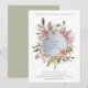 This gorgeous wedding invitation features an elegant circular frame around your names, with watercolor flowers in rich shades of marsala, orange, purple, pink, and green. The back is a coordinating shade of moss green.
