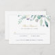 Cartes de mariage RSVP personnalisées et abordables avec une aquarelle boho verdure. Personnalisez le design avec vos informations de mariage RSVP. Utilisez les outils de conception pour customiser le texte, choisir une couleur arrière - plan et modifier les polices et les couleurs pour créer votre propre conception de carte de réponse mariage unique. Le côté inverse comporte un arrière - plan bleu marine ou utilisez l'espace pour ajouter du texte ou des photos supplémentaires si nécessaire. Ce magnifique design botanique moderne est parfait pour toutes les saisons.