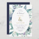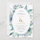 Affordable custom printed wedding invitations personalized with your event details. This elegant design features a faux gold foil ampersand with delicate blue and green watercolor foliage on a white background. Use the design tools to customize the text, edit the fonts and colours or add your own photos to create a classy and stylish wedding invitation.