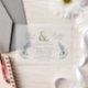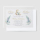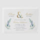 Custom printed wedding invitations personalized with your event details. This elegant design features a faux gold foil ampersand with delicate blue and green watercolor florals on a white background. Use the design tools to customize the text, edit the fonts and colours or add your own photos to create a classy and stylish wedding invitation.