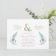 Affordable custom printed wedding rehearsal dinner invitations personalized with your event details. This elegant design features a faux gold foil ampersand with delicate blue and green watercolor greenery on a white background. Use the design tools to customize the text, edit the fonts and colours or add your own photos to create a classy and stylish wedding invitation.