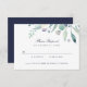 Affordable custom printed wedding RSVP cards with simple boho watercolor greenery. Personalize the design with your wedding RSVP info. Use the design tools to customize the text, choose any background colour and edit the fonts and colours to create your own unique wedding reply card design. Reverse side features a navy blue background or use the space to add additional text or photos if needed. This beautiful modern botanical design is perfect for any season.