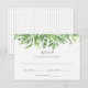 This trendy and stylish wedding response card features modern watercolor green leaves.