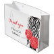 Montrez votre reconnaissance à vos filles de fleurs ou à d'autres mariages avec ce sac cadeau de faveur de mariage de remerciement. Parfait pour remplir avec un cadeau spécial ou des cadeaux pour montrer votre appréciation. Design moderne moderne moderne noir et blanc luxe avec une touche audacieuse de deux oeillets rouges. Correspond à l'ensemble de mariage carnation luxe moderne. Customisez / personnalisez ces sacs cadeaux de faveur avec votre titre, nom et un message personnel ou des remerciements. Lit actuellement Merci Flower Girl Lilianna. Art unique et design par Sarah Trett.