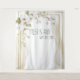 Grace your celebration with refined beauty and serene sophistication. This customizable wedding backdrop features cascading white orchids delicately draped over soft, champagne-toned fabric, framed by subtle gold linework that adds a hint of glamour. The spacious central area is perfect for adding personalized names, dates, or a meaningful phrase, creating an elegant focal point for your ceremony or photo area. Ideal for classic, romantic, or luxury-themed weddings.