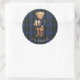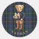 This blue tartan Christmas sticker has a cute preppy bear holding a gift on a coordinating blue tartan background. You can personalize with a name.