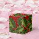 Un regard de feuille dans un rouge profond forme l'arrière - plan pour les arrangements luxuriants de feuilles et de baies verts aquarellés, peints en vert, éparpillés au hasard sur le ballotin.