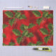 A foil look in a deep red forms the background for lush arrangements of watercolor-painted green holly leaves and berries, scattered over the foil.