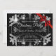 Luxe Silver Glitter Xmas Holiday Red Ribbon Black Invitation