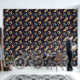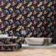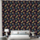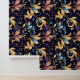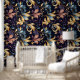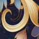 Transform your walls with this stylish wallpaper featuring an exquisite leafy pattern in blue, gold, purple and rose pink. The elegant design on this wallpaper showcases a captivating blend of blue, gold, blue and purple leaves and swirls set against a rich, dark background. This opulent and sophisticated pattern is sure to add a touch of elegance and grandeur to any room. generativecontent