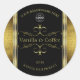 Make a lasting impression with this luxury and modern product label design featuring shimmering gold ornaments on a black background with golden glitter borders.