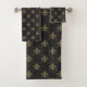 Luxurious black and gold colour Fleur de Lis royal pattern towel set.