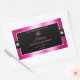 The design features a noble shimmering pink frame with fine decor lines, on a plain black background.