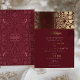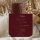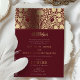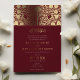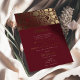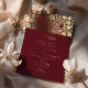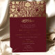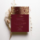 Celebrate your wedding with this luxurious burgundy and gold Islamic wedding invitation. This invitation features intricate floral patterns and elegant gold foil accents against a rich burgundy background, creating a sophisticated and opulent design. The traditional Islamic motifs and script blend seamlessly with modern elements, reflecting both cultural heritage and contemporary style. Printed on high-quality paper, this invitation is fully customizable to include your wedding details, ensuring a memorable impression on your guests. Perfect for a formal and elegant wedding, this invitation will set the tone for a truly special event.