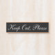 This sophisticated, classy design features the message "Keep Out, Please". This might be used in a business or an office to inform clients, customers or visitors that they are not permitted to enter a particular room or area.