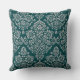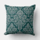 Luxurious Damask Pattern on Deep Turquoise Colour Throw Pillow