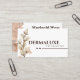 Showcase your beauty wellness brand with this elegant botanical business card. The front features the Dermaluxe Therapy logo framed by soft beige marble tones and delicate leaf illustrations for a natural yet luxurious feel. The back provides your name, title, contact details, website, and social media icons, accented by earthy floral artwork. Perfect for beauty therapists, spa owners, skincare specialists, or holistic wellness professionals who want a refined and professional image. Fully customizable with your own name, logo, and brand colours.