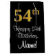 This elegant, luxurious, and stylish birthday giftbag design features a large ordinal number “54th” having a faux/imitation gold-inspired look, plus the birthday greeting message “Happy 54th Birthday,” and a customizable recipient name in a script-style font. The background is coloured black. A luxurious gift bag like this might be a fun way of wrapping a birthday present or gift being given to somebody who is celebrating their 54th birthday. [~Z0000514]