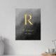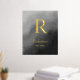 With touches of luxury, this gold or silver real foil art print features the family's or individual's initial, name, and year began or birthed. The background is in a textured black and white ombre style that includes different shades of grey to black. This design was created to add to your luxury or modern look home decor.