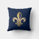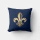 Luxurious gold Fleur de Lis navy throw pillow.