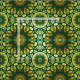 Seamless decorative pattern featuring yellow gradient ornaments on a green background.