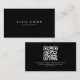 Luxurious, refined business card template with customizable QR code and modern sans serif font. The black and white business card design is on-trend, classic, and sure to make your business stand out. This elegant business card template is easy to customize by adding your logo and business information. Use this business card template to easily direct clients to your website.