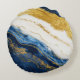 Luxurious Navy Blue & Gold Leaf Marble Round Pillow