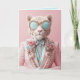 A stylish white leopard wearing an extravagant pink suit adorned with jewels, floral details, and elegant embellishments. The feline sports diamond-studded round sunglasses and a pastel bowtie, exuding sophistication and glamour.