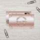 The design features glamourous, ornate golden decorative elements in the centre and corners, on a bright shimmering rose gold background.