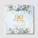 Celebrate a once-in-a-lifetime milestone with this elegant 90th birthday guest book, designed in soft dusty blue, pastel blue, pale blue, and light blue tones woven with shimmering gold accents. The beautiful watercolor florals blend eucalyptus greenery with refined blue blossoms, surrounding a delicate gold-frame layout perfect for a sophisticated birthday celebration. This customizable 90th birthday sign-in book lets you add your own name, date, and event details, creating a meaningful keepsake guests will love signing and sharing memories in. Ideal for elegant décor themes, this design complements luxury parties, modern celebrations, and timeless milestone gatherings. A perfect blend of style and sentiment, this personalized 90th birthday guest book becomes a cherished heirloom filled with warm wishes, laughter, and unforgettable moments.