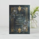 Luxury Baroque Gold Frame Dark Teal Floral Wedding Invitation