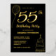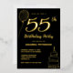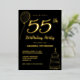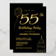 Luxury Black 55th Birthday Party Real Gold Foil Invitation with balloon and birthday cake.