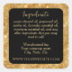 An ingredients label featuring a faux gold glitter border and and black interior with space for your information.