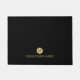 featuring black family monogram in gold circle element with family name in gold professional font style on black background.