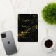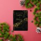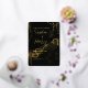 Une invitation de mariage élégante en noir et or avec effet foil et fleurs luxueuses. Parfaite pour un mariage moderne, chic et inoubliable.