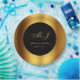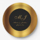 These luxury wedding paper plates feature faux gold calligraphy on a black background bordered by faux gold. Personalize with your monogram and names with wedding date. Congrats on your wedding and all the best in the future. Designed by Susan Coffey.
