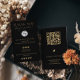 Elegant black and gold thank you business card featuring a bold QR code for easy customer follow-up. Designed for beauty brands, makeup artists, boutiques, and online shops. The modern luxury layout includes space for logo, discount code, social media, and contact details. A stylish way to increase repeat orders and brand recognition.