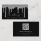 Luxury Black Silver Sparkle Glitter Drips QR Code Business Card
