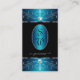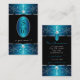 Make a lasting impression with this luxurious and elegant business card design featuring fine filigree ornate ornaments with diamonds and sparkling stars. The borders are shimmery teal and blue with silver decor on a black background.