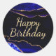 Luxury Blue and Gold Glitter Agate Birthday Classic Round Sticker
