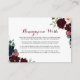 This luxury boho colourful floral honeymoon wish enclosure card is perfect for a rustic wedding. The design features elegant watercolor blue, burgundy, pink and blush flowers with green foliage.