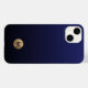Modern Minimalist Luxury Brushed Gold Monogram Emblem Gradient Phone Case. Elegant brushed metallic gold monogram emblem with monogrammed initial in modern typography on a gradient background in shades of navy blue.